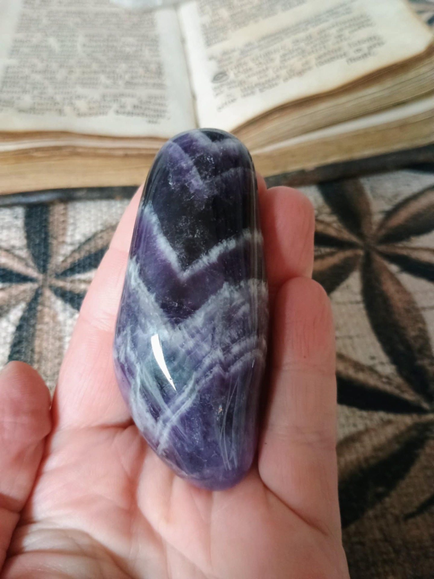 Tromlovaný Ametyst velikosti cca 3,5 x 2 x 7,5 cm. Tyto minerály jsou vhodné do ruky jako hmatky nebo jako harmonizátor prostoru. Kupujete konkrétní kus na fotografii.