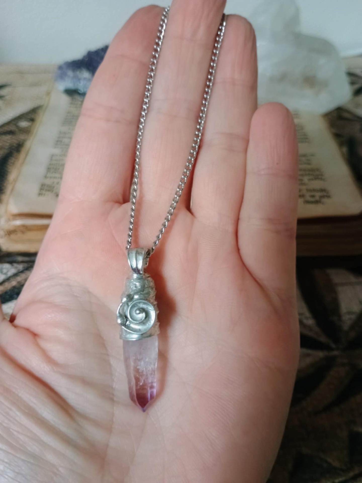 Vytvořeno z mědi, bezolovnatého cínu s příměsí stříbra a z krásného čirého Ametystu Vera Cruz.