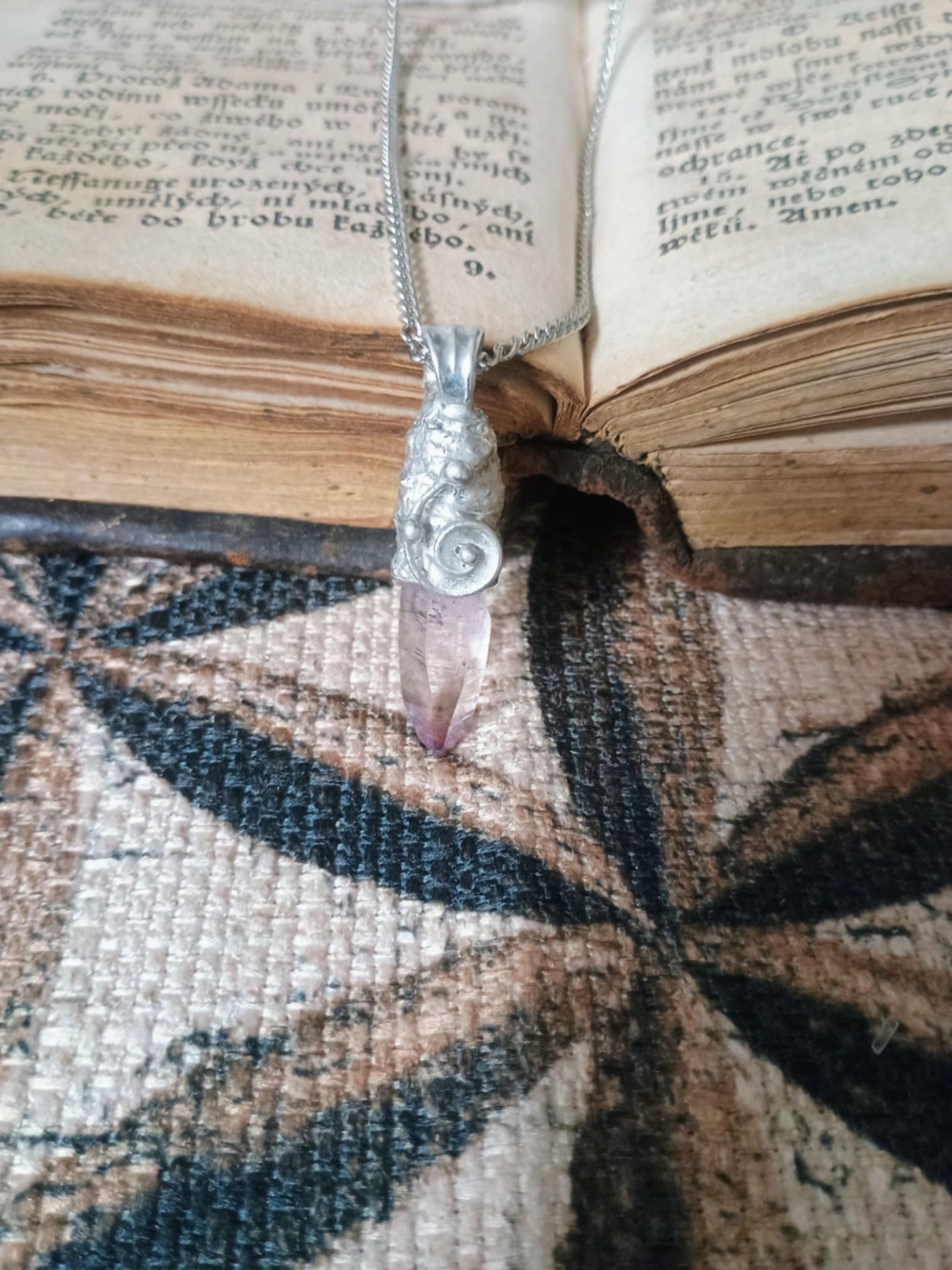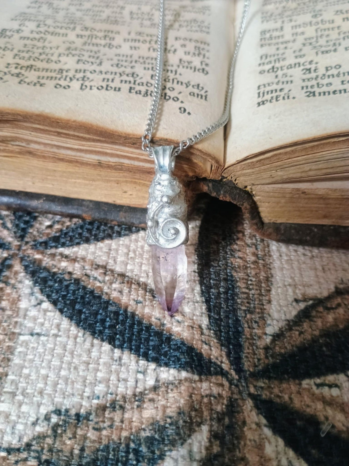 Ručně vyrobený cínovaný šperk.