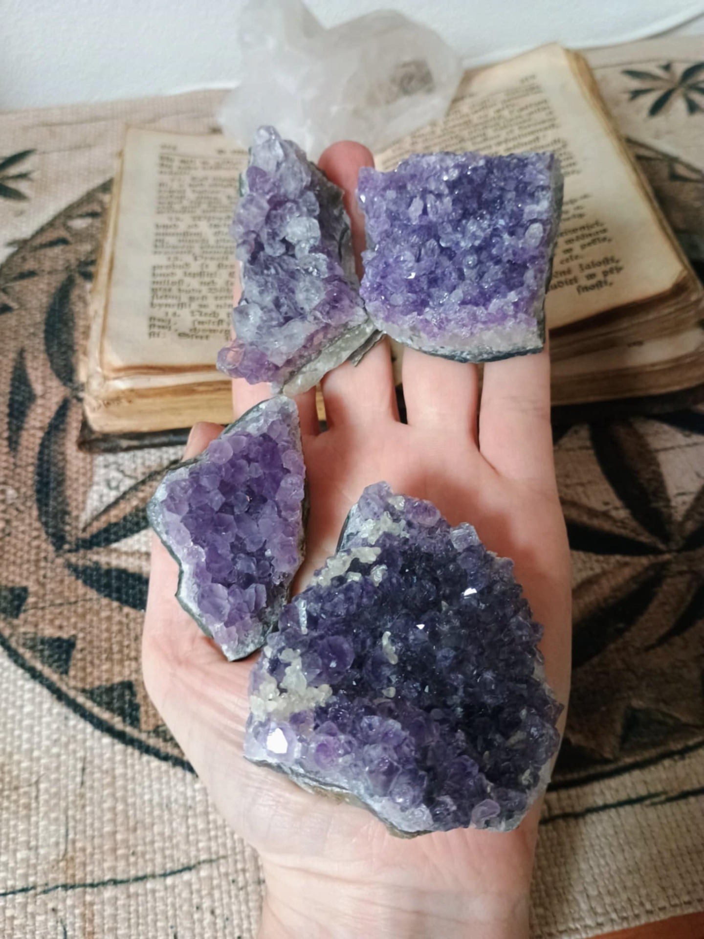 Tyto drúzy používám na odkládání a energetické čištění šperků a prostoru. Velice rády je mají i děti.