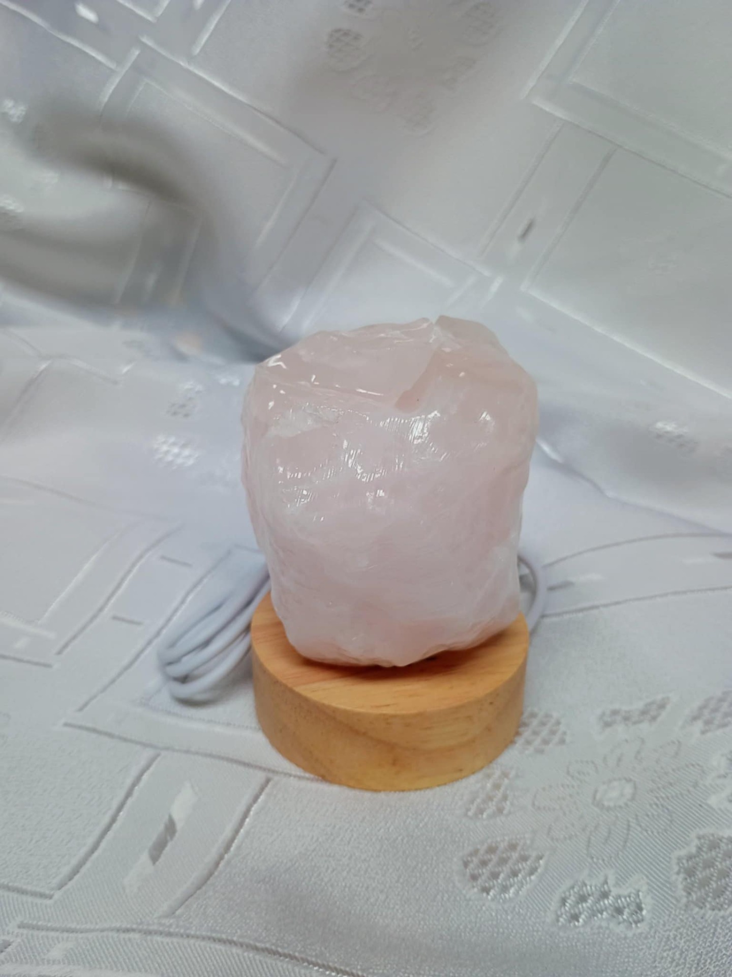 Lampa je dodávána včetně světýlka, na které si můžete položit i jiný krystal. Koncovka na USB. Zapínání a vypínání na vypínač jako lampička. Lze připojit koncovku z nabíječky a dát i do elektrické zásuvky. Krásné propojení světla a minerálu pro zimní večery. Podstavec - ostré ledové světlo, které tlumí minerál.
