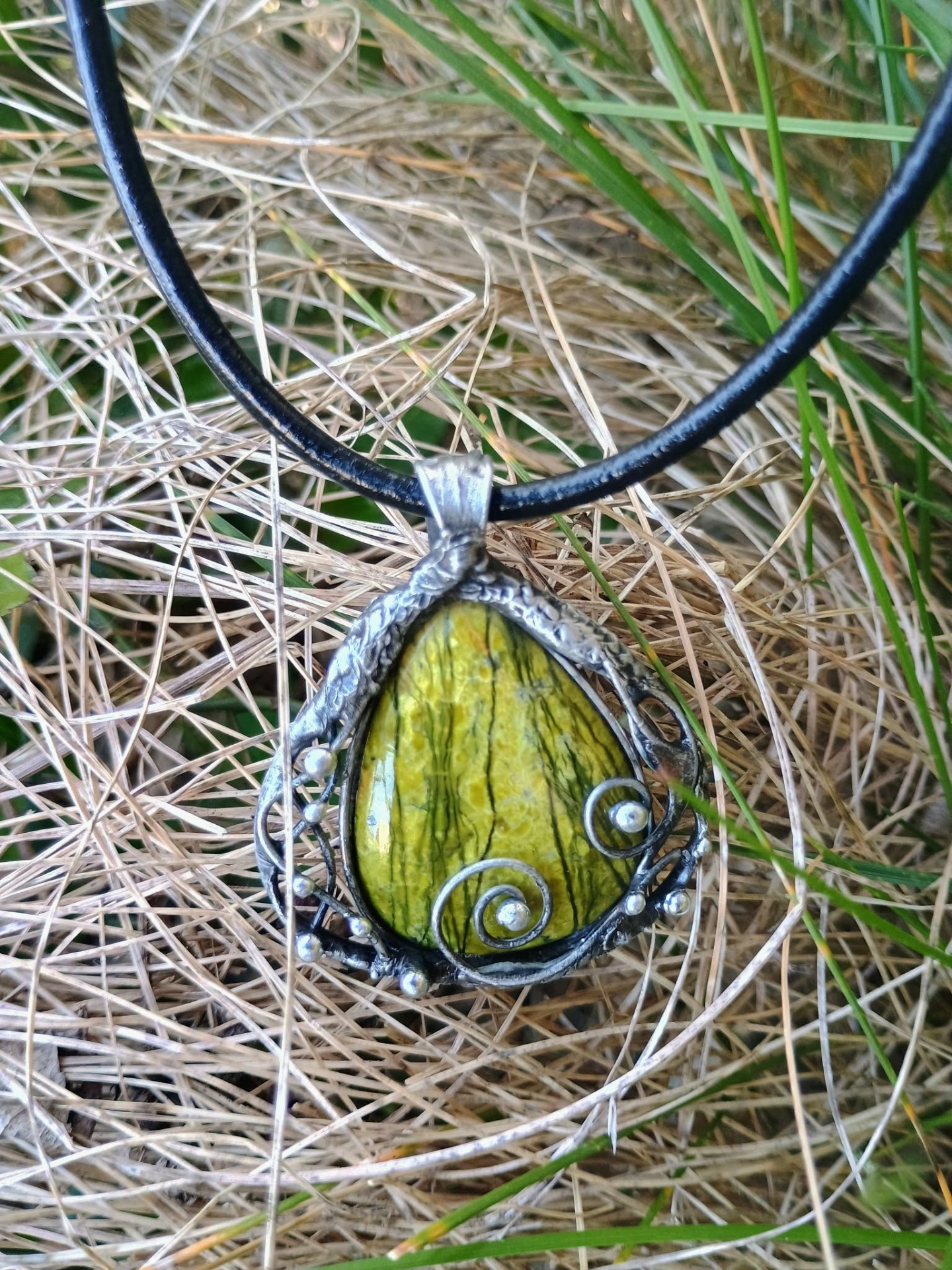 Ručně vyrobený cínovaný šperk.