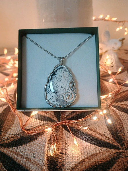 Vytvořeno z mědi, bezolovnatého cínu s příměsí stříbra a z Dentrického opálu - Merlinitu.