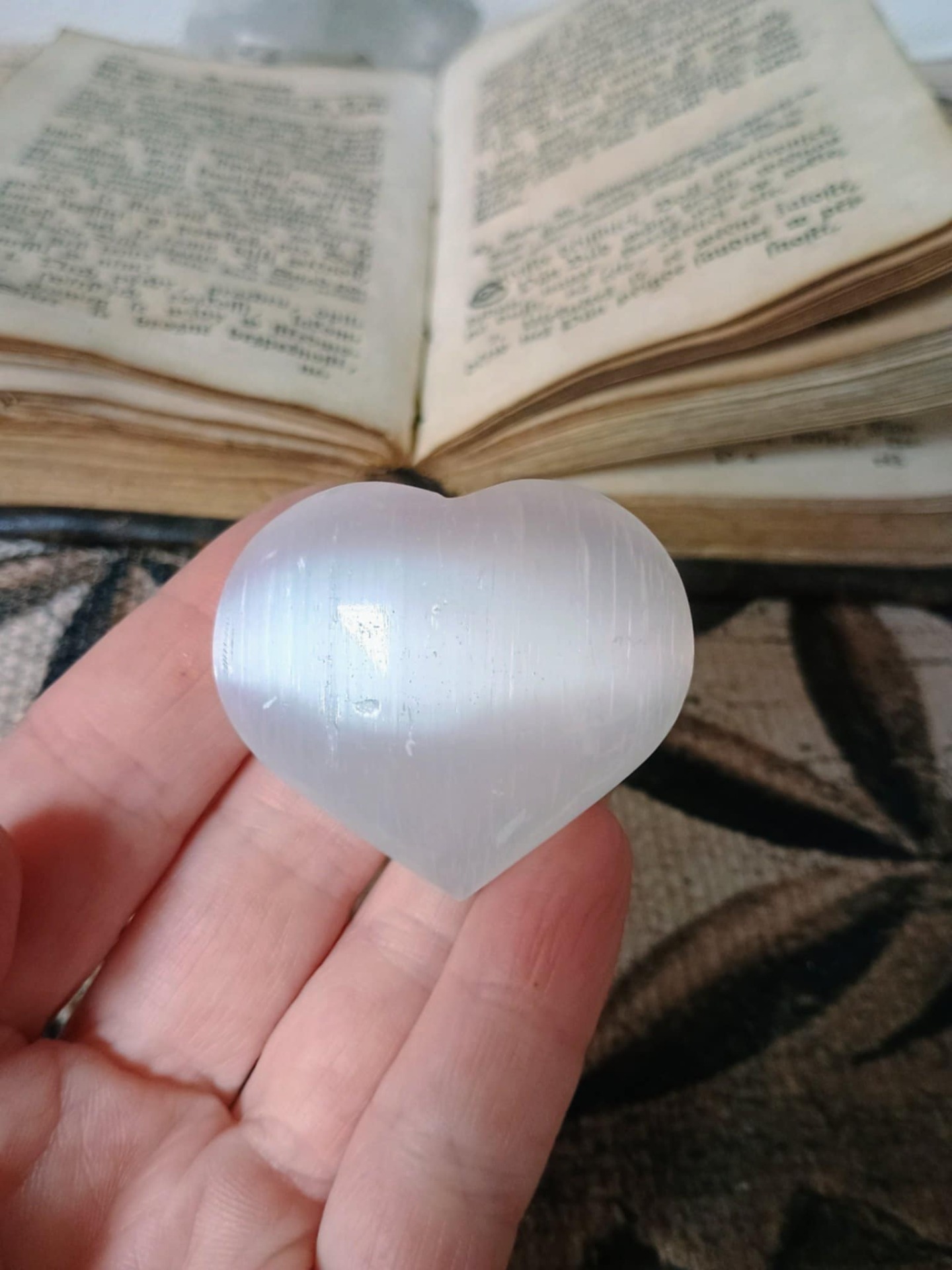 Něžné srdce ze Selenitu. Kupujete konkrétní kus na fotografii.