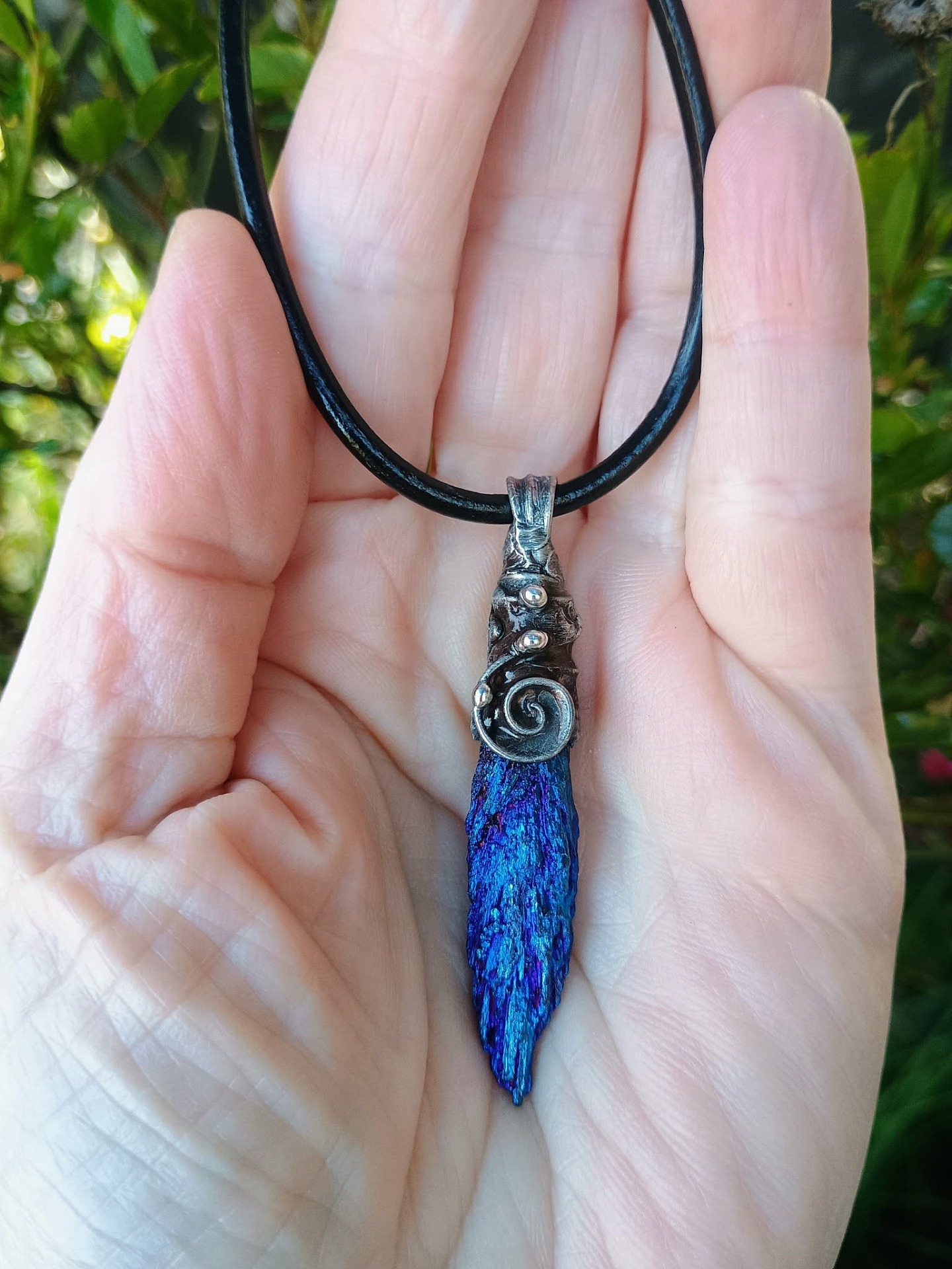 Vytvořeno z mědi, bezolovnatého cínu s příměsí stříbra a z Černého pokoveného Kyanitu.