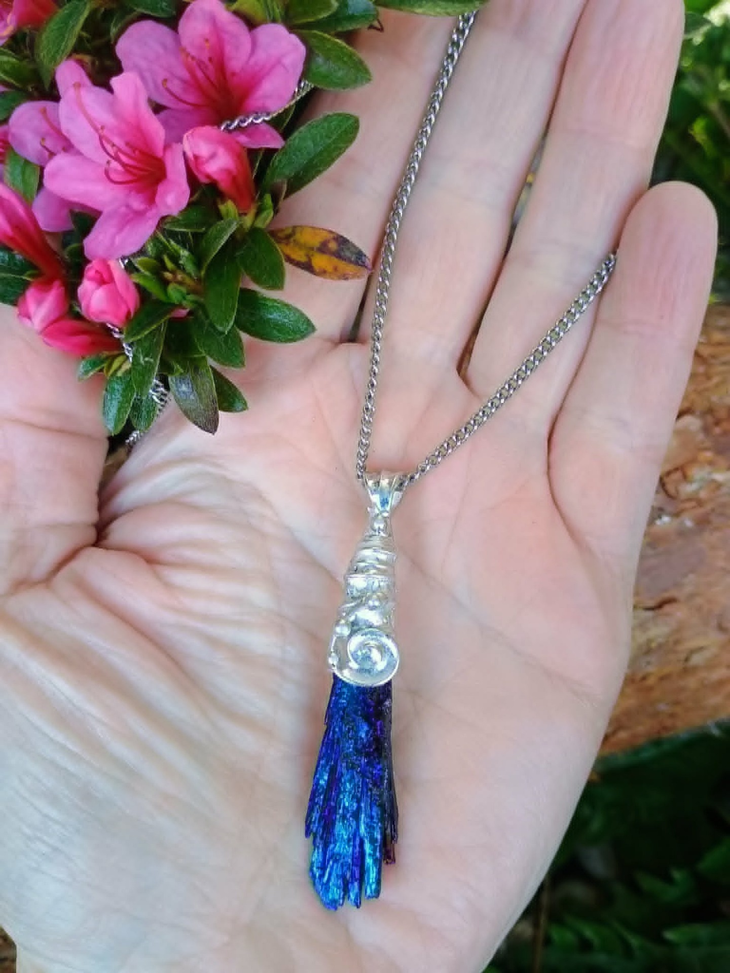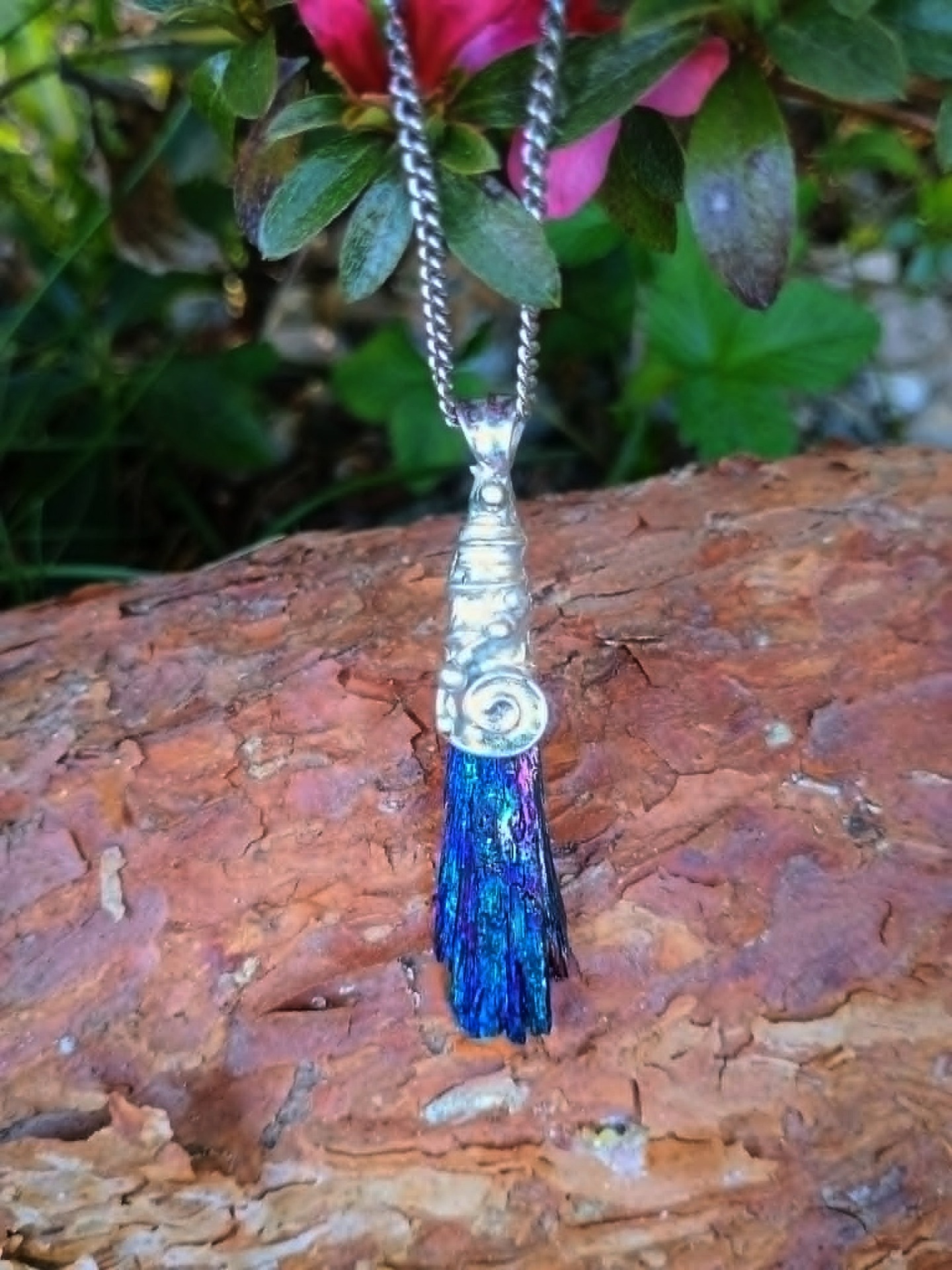 Vytvořeno z mědi, bezolovnatého cínu s příměsí stříbra a z Černého Kyanitu, který je pokovený pro modrý metalický vzhled.