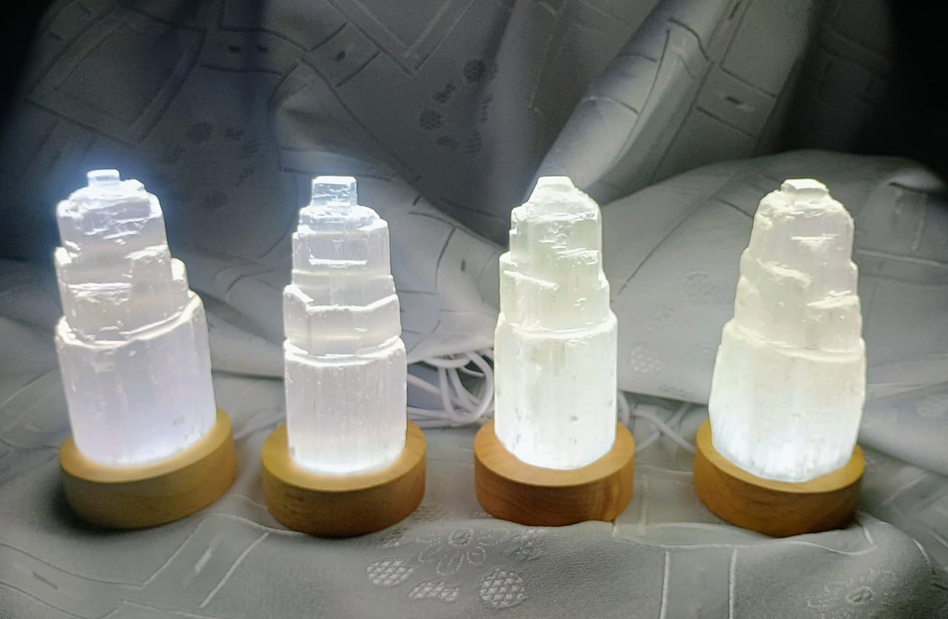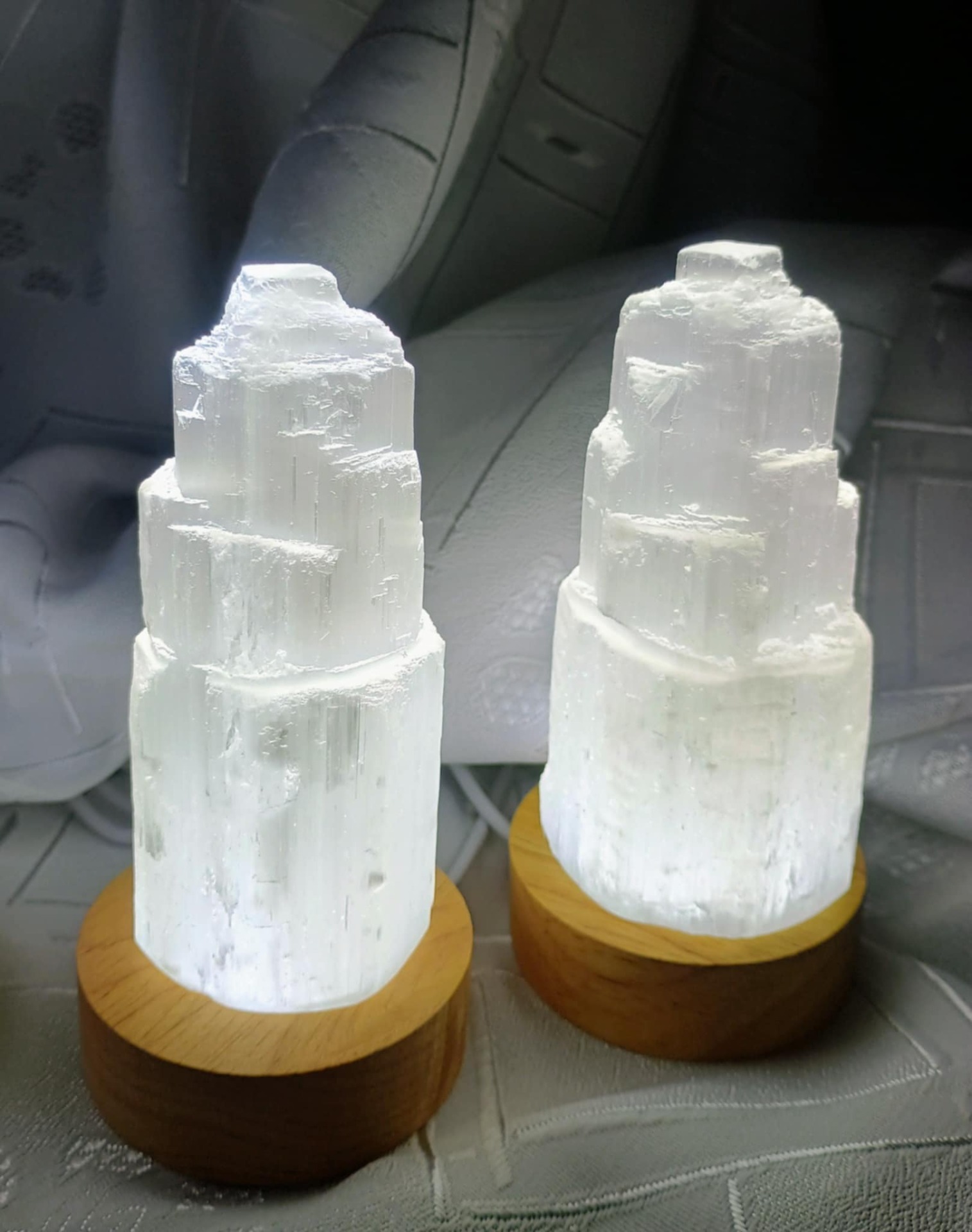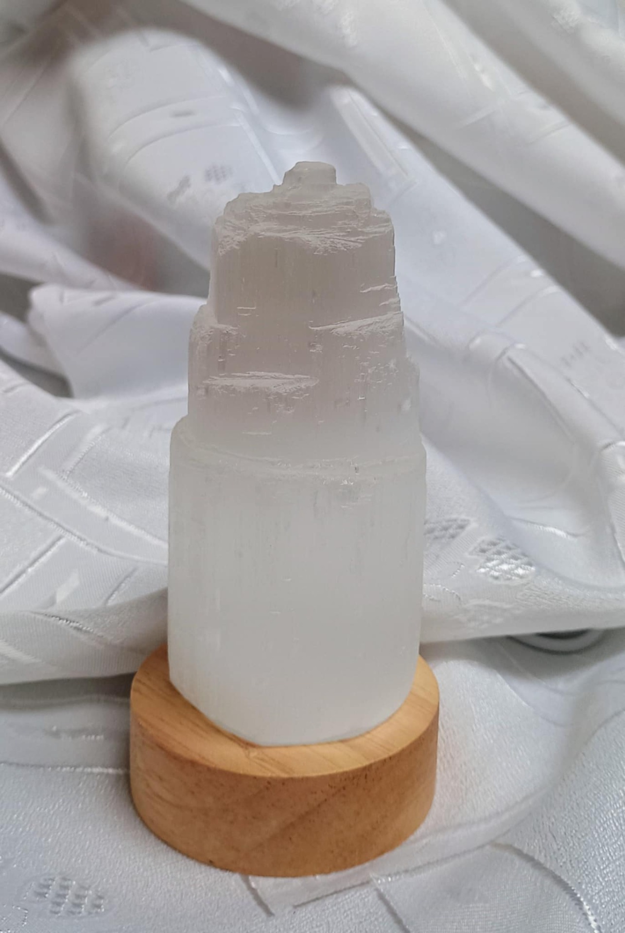 O produktu: Lampa ze surového Selenitu ve tvaru věže.