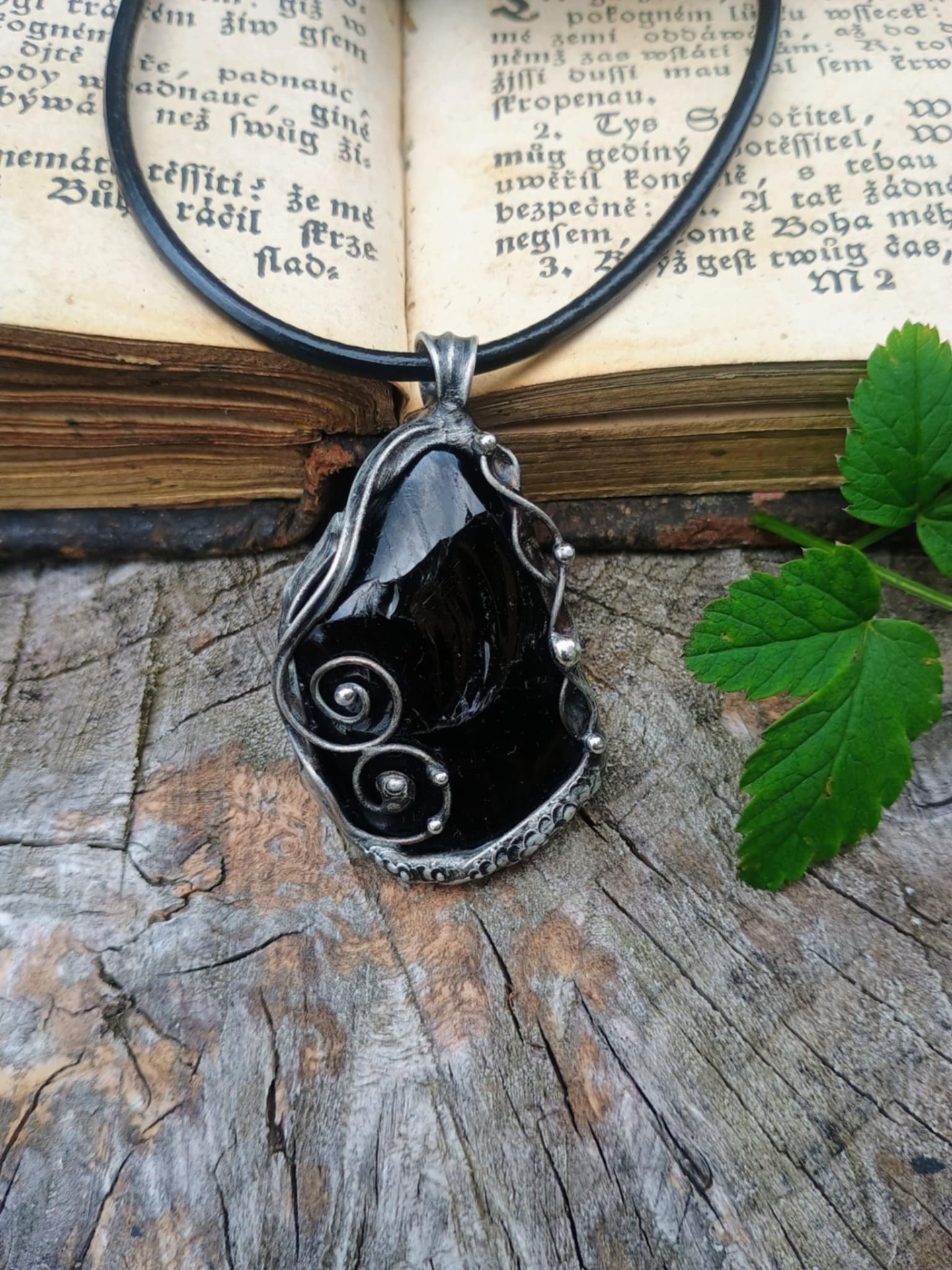 Vytvořeno z mědi, bezolovnatého cínu s příměsí stříbra, ze surového Černého obsidiánu.