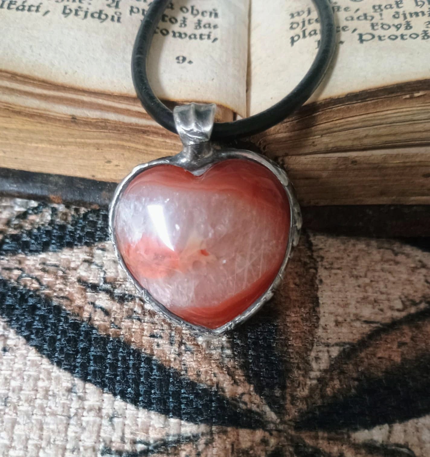 Vytvořeno z mědi, bezolovnatého cínu s příměsí stříbra a z krásného Achátu ve tvaru srdce.