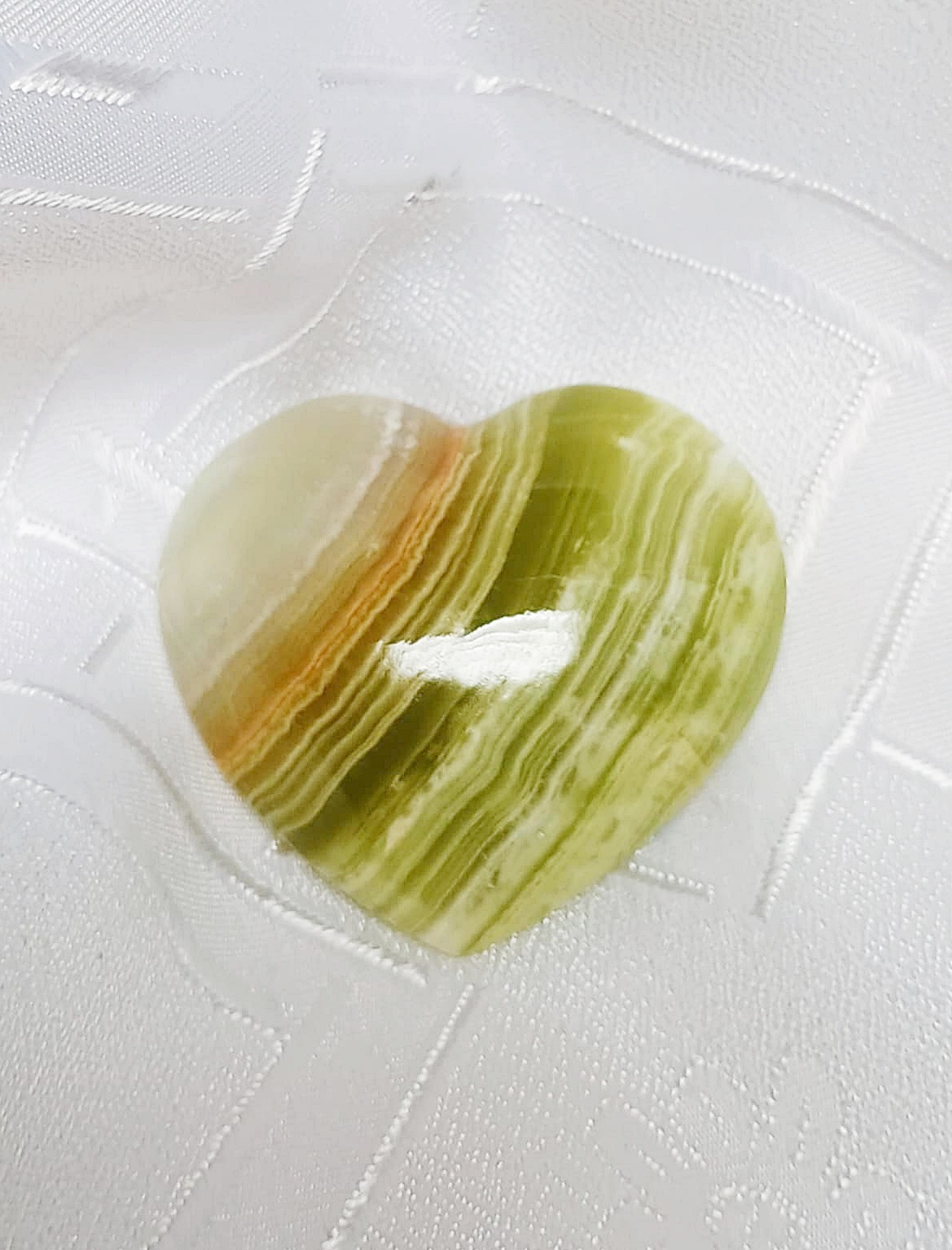 Velice příjemné srdce z Aragonitu. Zelené a hnědé zbarvení. Nádherný dárek pro kohokoliv.