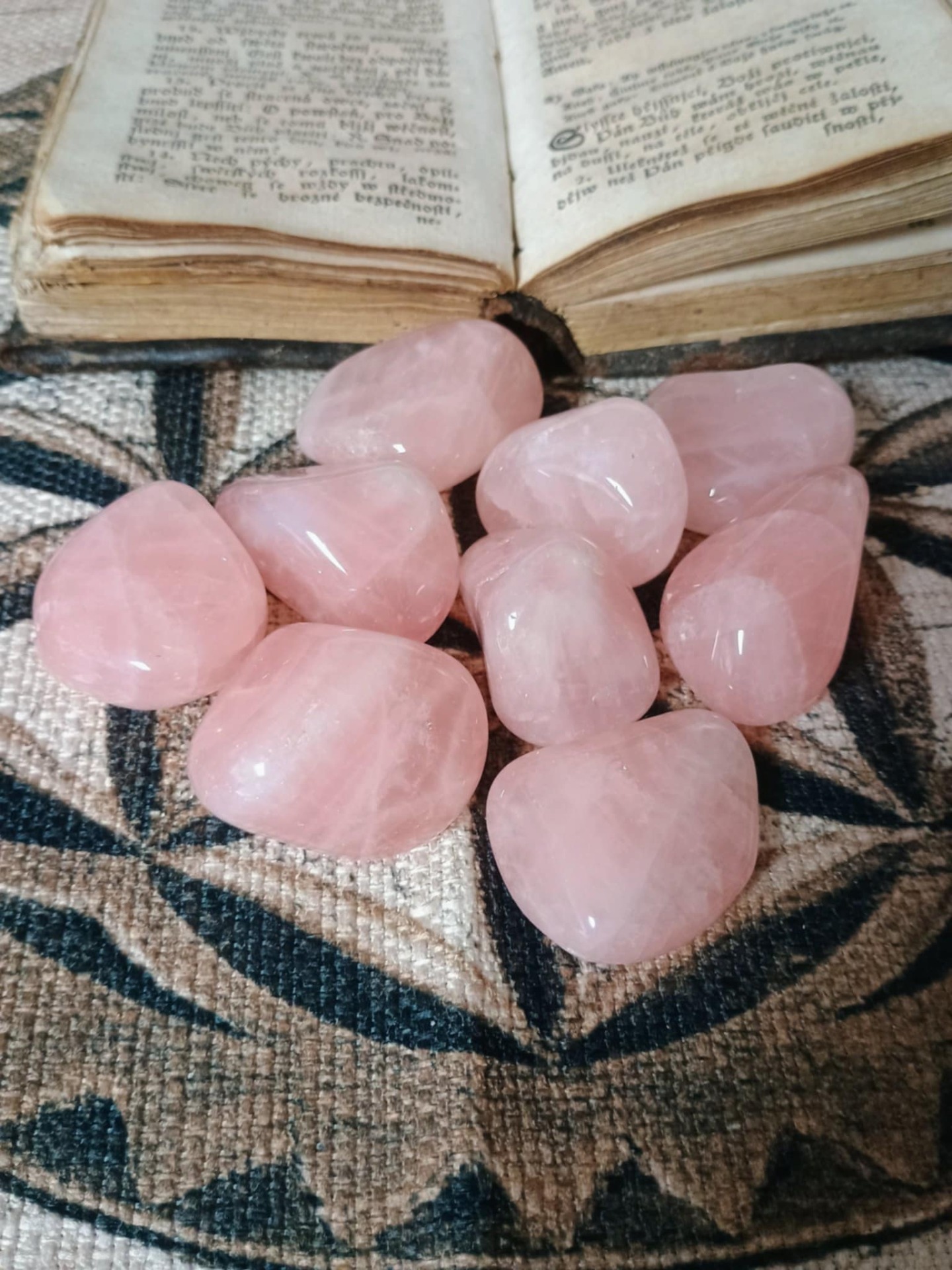 Tromlovaný Růženín velikosti cca 3 x 4 cm. tyto minerály jsou vhodné do ruky jako hmatky nebo jako harmonizátor prostoru. Náhodný výběr z kusů na fotografii.