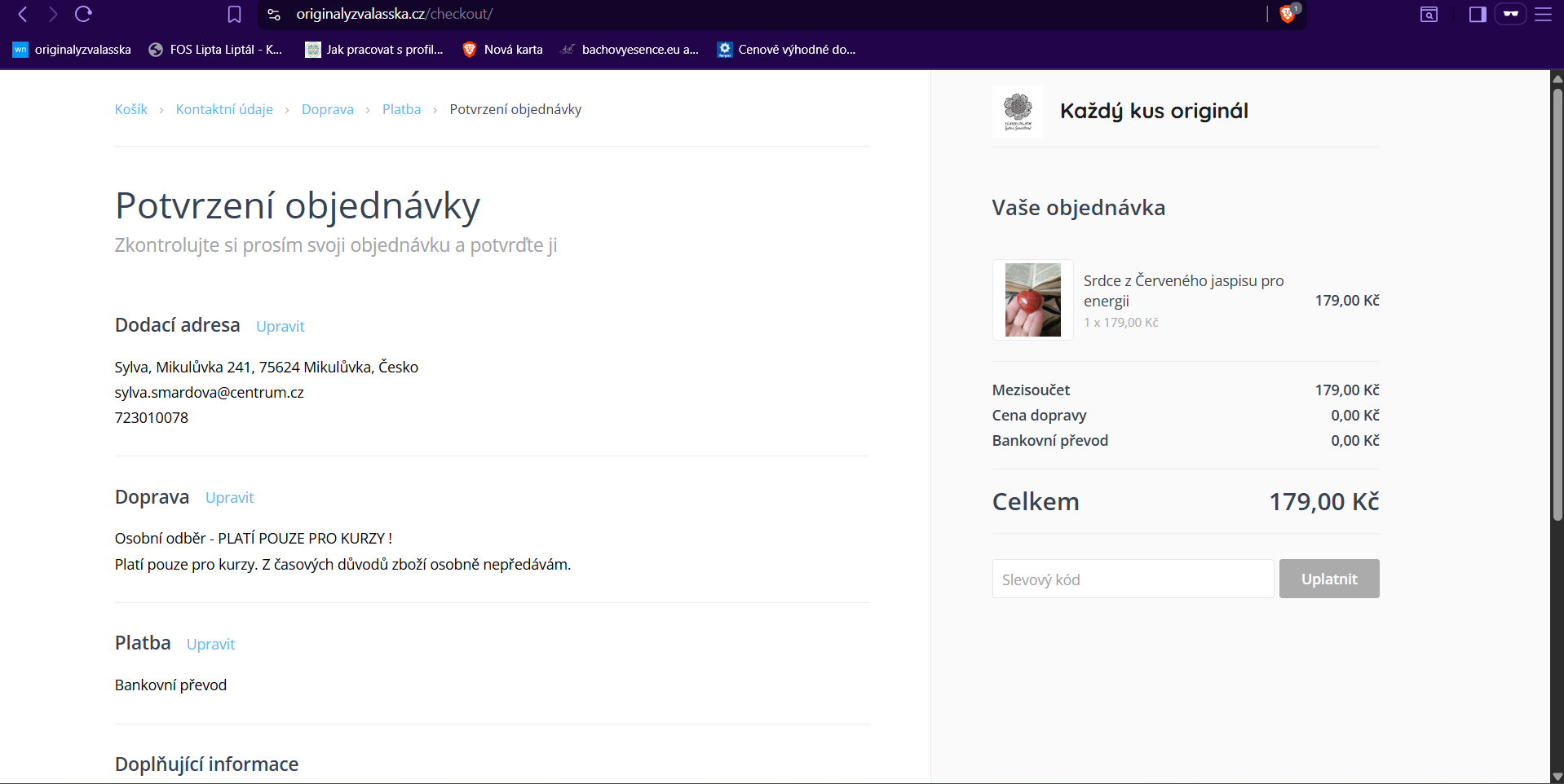 Potvrďte objednávku modrým tlačítkem OBJEDNAT S POVINNOSTÍ PLATBY.