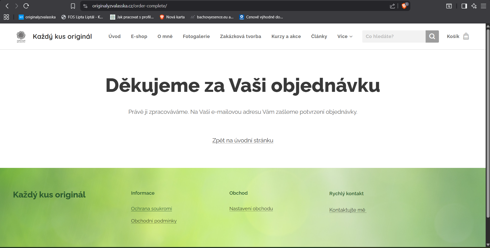 Pokud je objednávka v pořádku objeví se Vám : Děkujeme za Vaši objednávku jako na poslední fotografii.